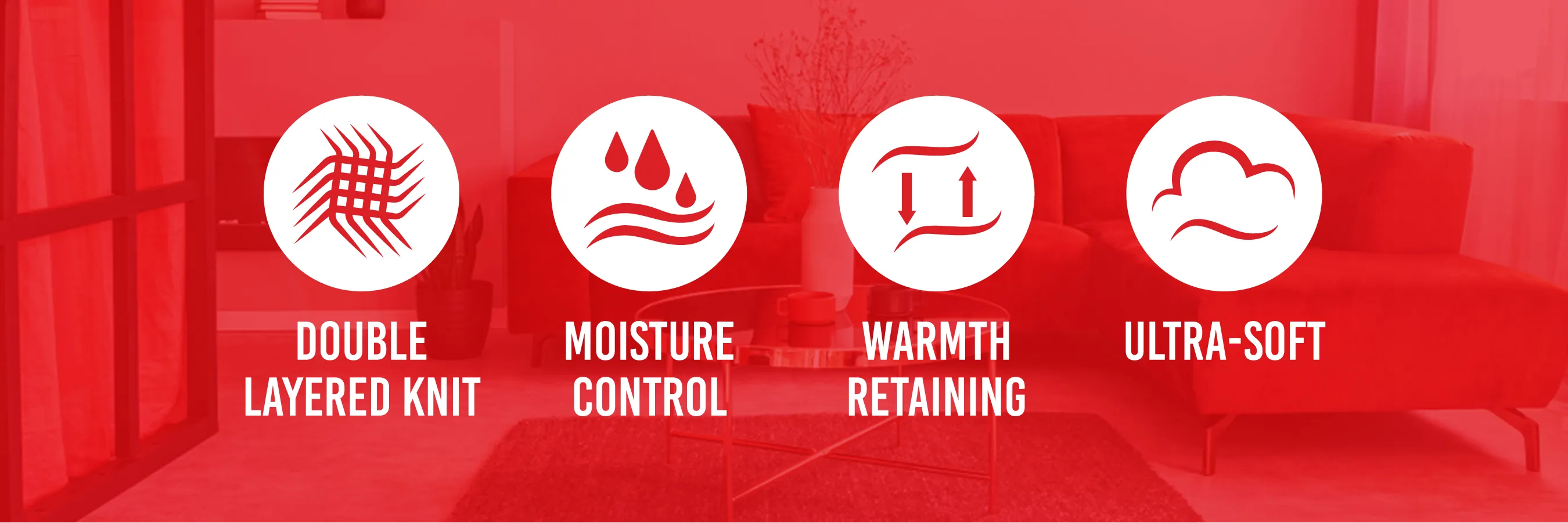 - Double layered knit creates a buffering zone of warm air with a viscose-cotton blend.