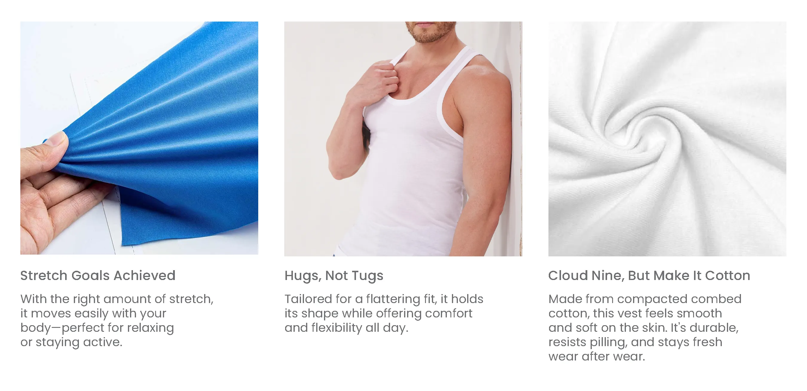Men's Vests Compact Cotton Round Neck Design for Comfortable Classic Fit and Superior Stretch (Pack Of 2)