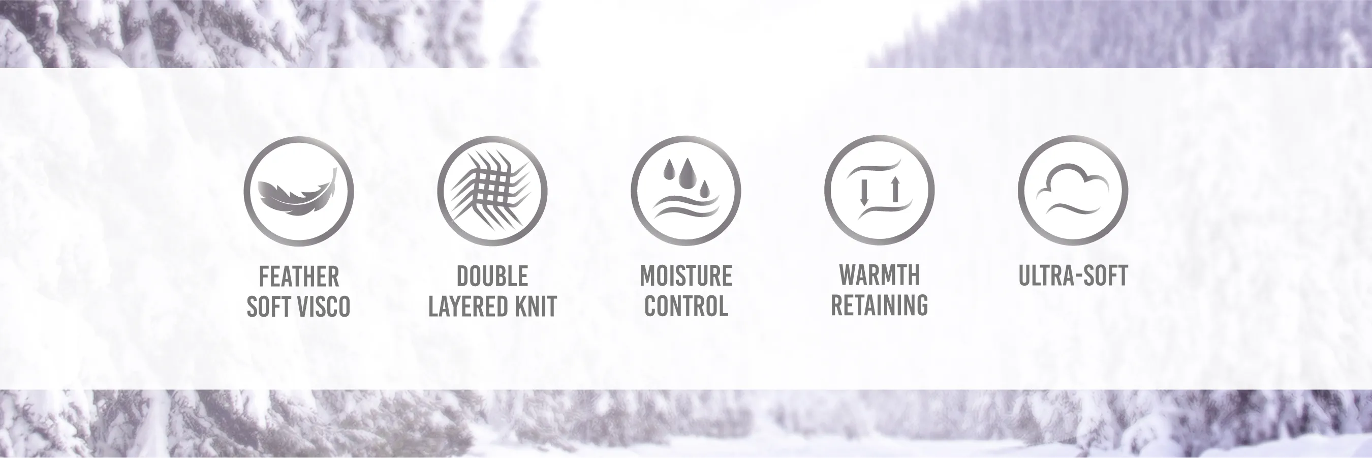• Double layered knit creates a buffering zone of warm air with a viscose-cotton blend.