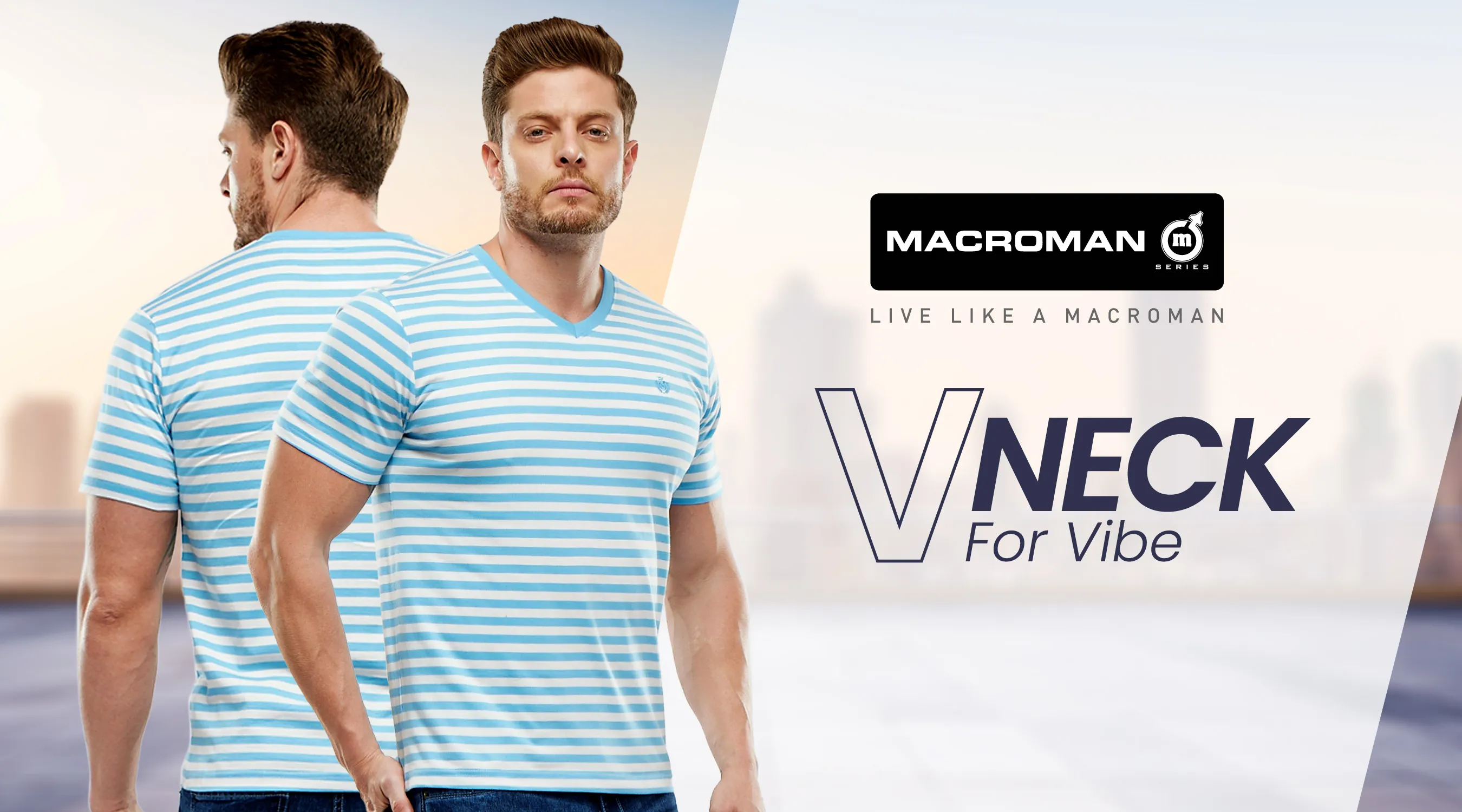 Macroman M-Series Men’s Smartz Basics T-Shirt in Cotton Rich Single Jersey Fabric, V-Neck Full Sleeve Style
