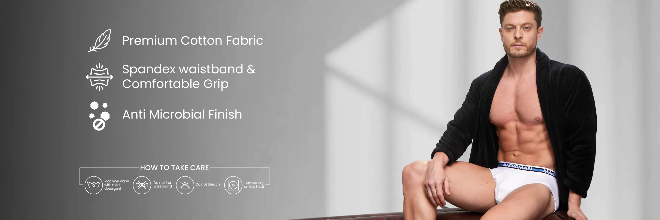 Men's Briefs in Cotton Stretch Fabric with Low Rise Fit Elastic Waistband and Maximum Back Coverage | INS211