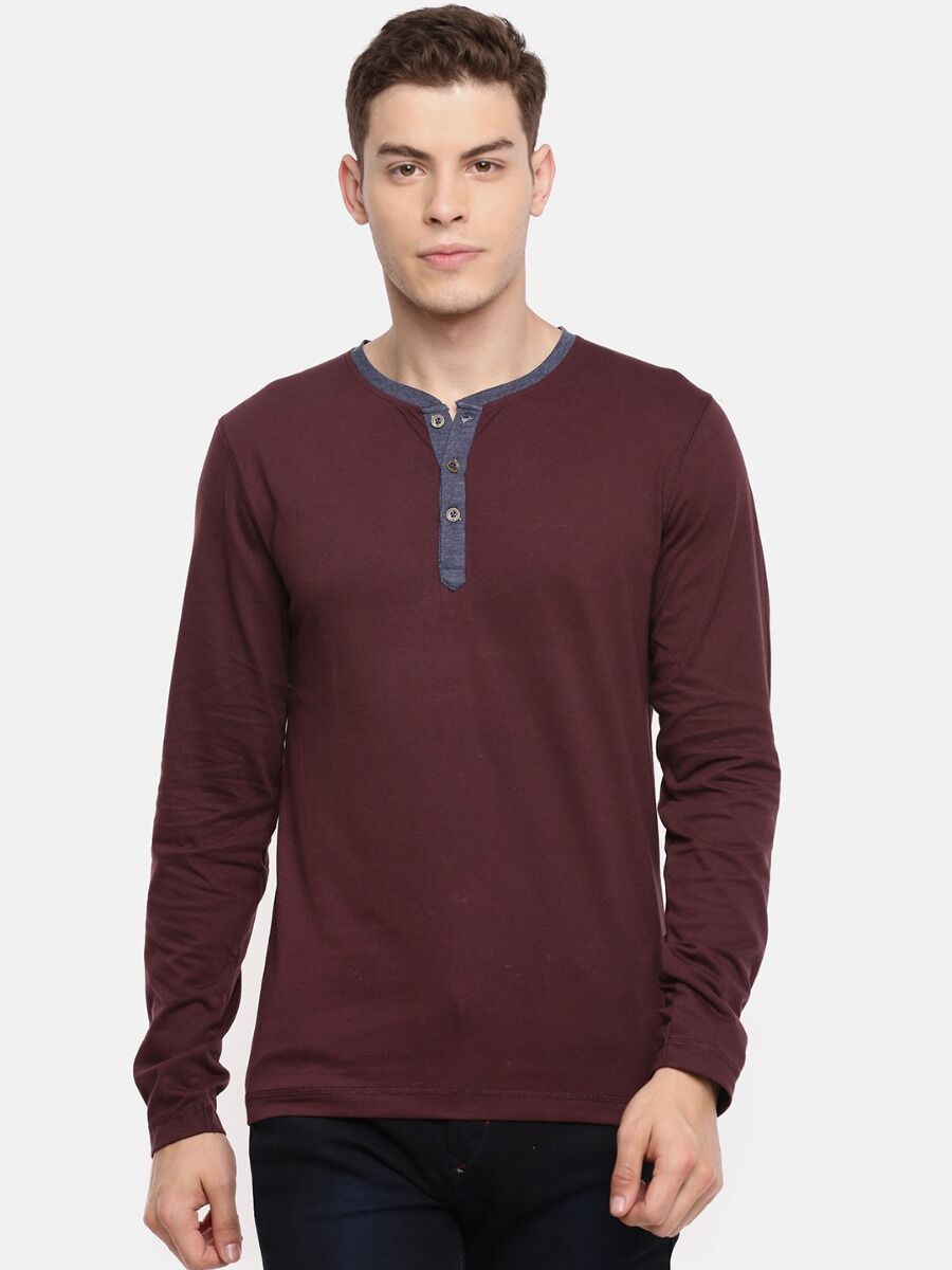 Macroman M-Series Men’s Smartz Basics Contrast Henley T-Shirt in Cotton Rich Single Jersey Fabric, Full Sleeve Style